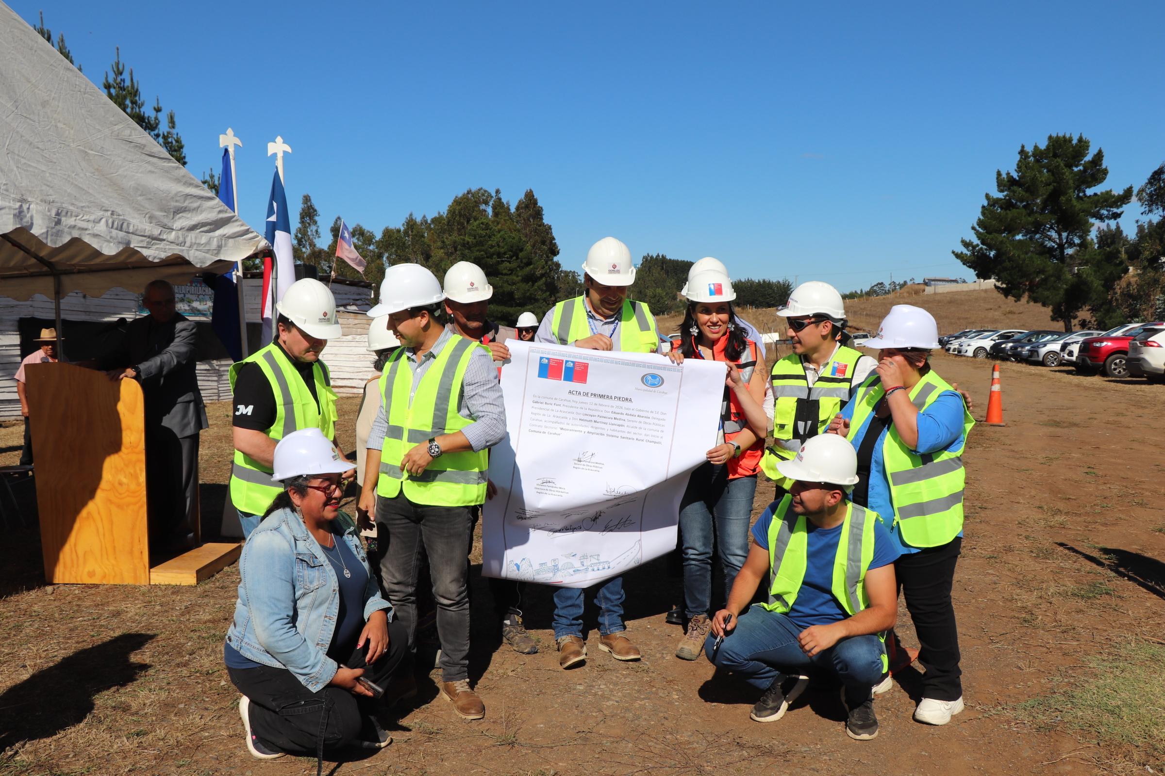 Más de 2.200 millones de pesos serán invertidos en el mejoramiento y ampliación del servicio de agua potable rural Champulli en Carahue. La información fue dada a conocer por el Seremi MOP Lincoyan Painecura, quien junto a la Directora de la DOH Vivianne Fernández Mora; el Alcalde Helmuth Martínez y vecinos, instalaron la primera tubería para la ejecución de esta iniciativa.